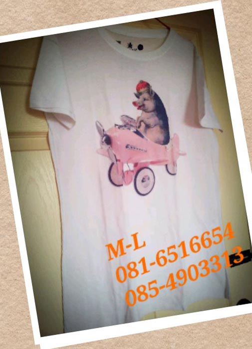 (1.1)Orirush เสื้อยืดผู้ชาย สีขาว ลายหมูขับเครื่องบินชมพู มี Size M และ L เนื้อผ้านุ่มใส่สบาย